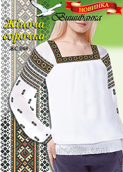 Кольорова, символьна, паперова схема для вишивання жіночої сорочки. Вишивка хрестиком. Розмір схеми А3. Нитки вказані муліне ДМС.